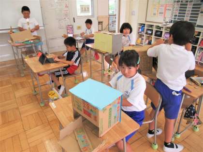6月26日(月) 4年生の図工 公開日 2023/06/26 更新日 2023/06/26 できごと 4年生の図工では、ダンボールを使った大がかりな作品づくりをしていました。子どもたちは夢中で楽しそうに作品づくりに取り組んでいました。作品づくりが終わった子どもたちは、タブレットでドリル学習をしていました。時間を有効に使っていました。