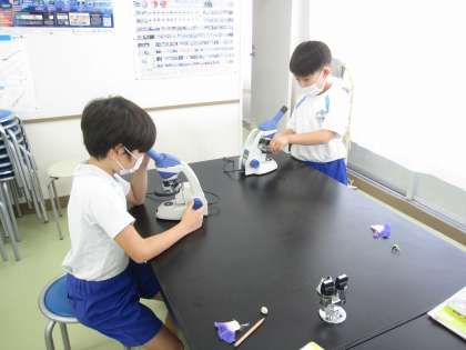 9月1日(金)5年理科 植物の実や種子のでき方(その2) 公開日 2023/09/01 更新日 2023/09/01 できごと はじめにアサガオの花の花粉(2枚目の写真)を観察しました。3枚目の写真はヘチマの花粉です。
