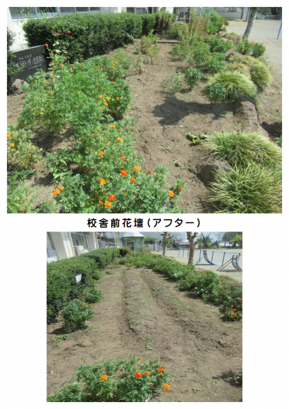 9月3日(日) PTA環境整備作業(5) 公開日 2023/09/03 更新日 2023/09/03 できごと 校舎前の花壇の環境整備作業の様子です。雑草がきれいになくなり、マリーゴールドの花がひときわ目立ちます。
