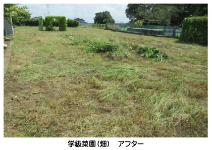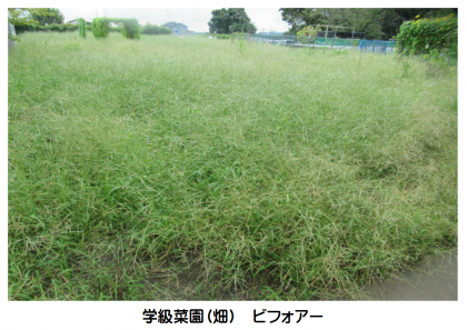 学級菜園(畑)の作業前(ビフォアー)&作業後(アフター)の様子です。一目瞭然、本当にきれいになりました。