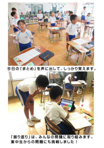 (写真下)チャレンジウィーク中の東中生も、小学生の学習をサポートしてくれています。