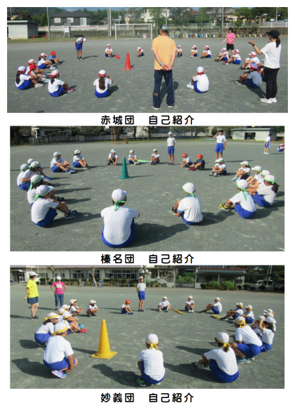 9月5日(火) 運動会結団式(1) 公開日 2023/09/05 更新日 2023/09/05 できごと 業前活動の時間に、運動会の「結団式」を行いました。赤城団(赤色)、榛名団(緑色)、妙義団(黄色)のそれぞれのハチマキをつけて、子どもたちは「やる気いっぱい」です。