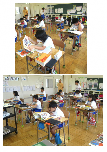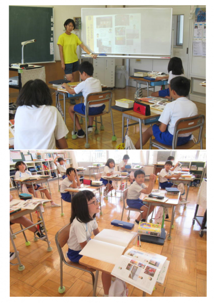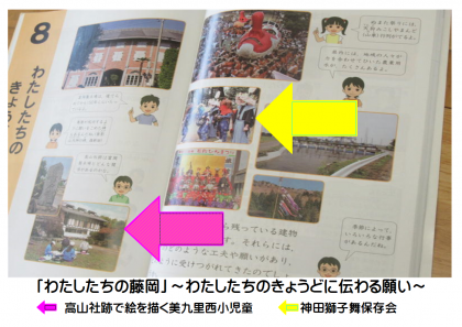 4年生の社会では、「わたしたちの郷土につたわる願い」について学習していました。すると子どもたちが、『わたしたちの藤岡』のページに、「あっ、美九里西小学校の人だ!」と高山社跡で絵を描く会をしている本校児童の写真を発見!さらに、先生から「この写真は、神田獅子舞保存会の人たちです」と紹介がありました。こうした学習をとおして、子どもたちに「郷土を知り、郷土を愛する気持ち」が育っていきます。