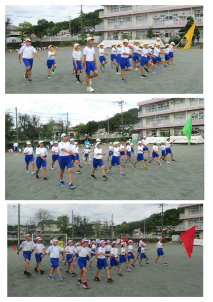 9月6日(水) 体育集会(1) 公開日 2023/09/06 更新日 2023/09/06 できごと 運動会の全体練習は、業前活動の時間を使って、朝の涼しいうちに行います。今日は、各団の応援場所と、応援席から閉会式に向かう動きを確認しました。各団長・副団長のリーダーシップのもと、みんなが協力してよい動きができています。