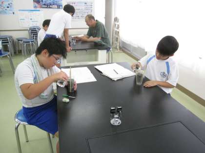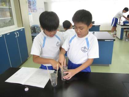 土のつぶの大きさと水のしみこみ方との関係を調べました。