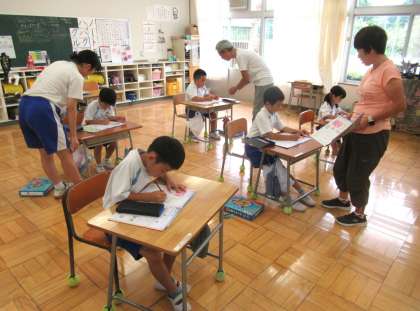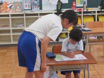 9月6日(水) 1年生の算数 公開日 2023/09/07 更新日 2023/09/07 できごと 1年生の算数では、「20までのかず」の学習で、算数ドリルの問題に取り組んでいました。担任・支援員の先生、チャレンジウィーク中の東中生に見守られ、子どもたちは一人一人集中して学習していました。