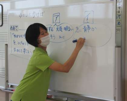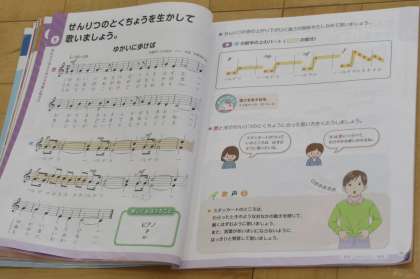 9月7日(木) 4年生の音楽 公開日 2023/09/07 更新日 2023/09/07 できごと 4年生の音楽では、めあて「『ゆかいにあるけば』のせんりつのとくちょうを生かして歌おう」の学習に取り組んでいました。子どもたちから出された意見を先生がホワイトボードに書き出していました。「元気・明るい」「急に静か」の旋律の特徴から、音の強弱を表す「P(ピアノ:静かに)」についても学びました。