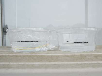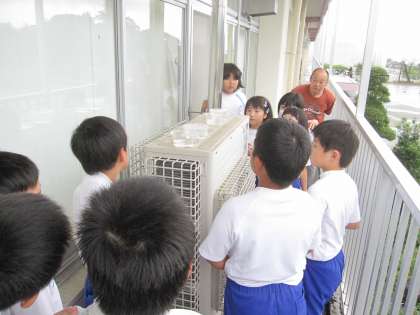 水が空気中に出ていくか、水を入れた入れものを使ってくらべながら調べました。