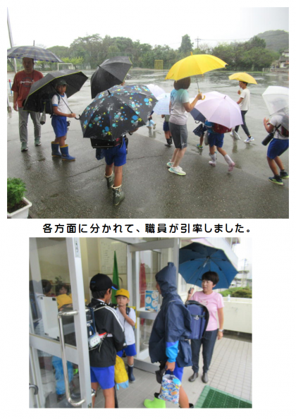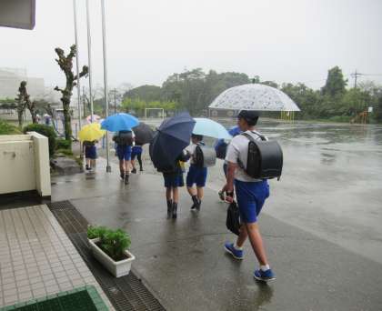 9月8日(金) 台風13号の接近に伴い早下校 公開日 2023/09/08 更新日 2023/09/08 できごと 今日は、台風13号の接近に伴い、3校時で給食を食べて、12時10分に早下校(集団下校)となりました。保護者・学童の皆様には、下校時刻の変更について、ご理解・ご協力いただき、ありがとうございました。