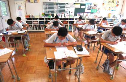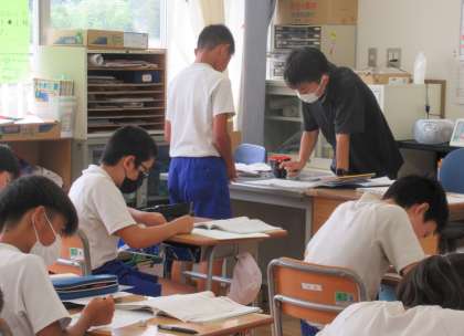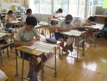 6年生の算数では、樹形図を使った問題を解いていました。6年生の学習への集中力が伝わってきました。