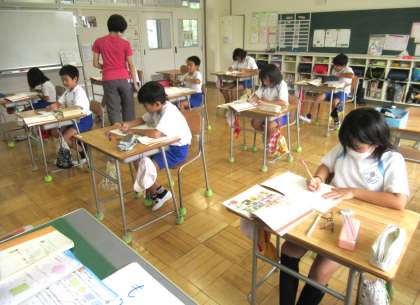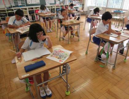 9月11日(月) 4年生の国語 公開日 2023/09/11 更新日 2023/09/11 できごと 4年生の国語では、「漢字の広場」の学習で、3年生までに習った漢字を使って、教科書の場面絵に当てはまるように、お話をノートに書いていました。「そして」「しかし」などのつなぎ言葉も使って文章にしていました。