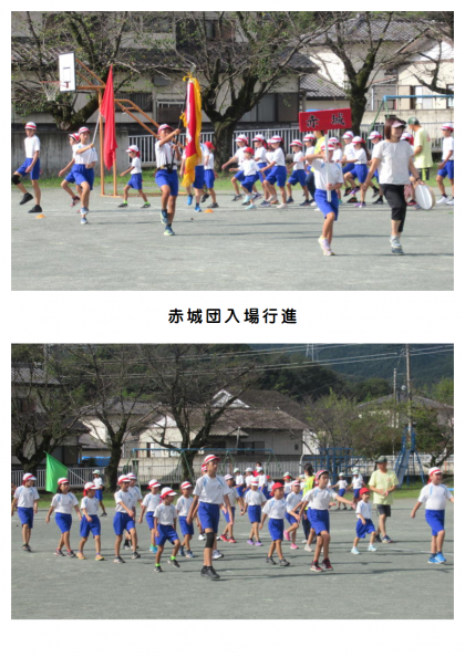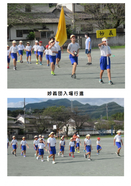 9月12日(火) 入場行進練習 公開日 2023/09/13 更新日 2023/09/13 できごと 入場行進練習です。初めての練習とは思えない、見事な行進です。今年度は、暑さ対策のため、入場門から入って、1周まわらずに、校庭南側直線コースの位置から校舎に向かって直進します。短い距離となりますが、それゆえ、子どもたちは力強い行進を見せてくれることでしょう。