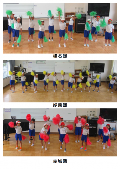 最後に、音楽室で、1〜3年生による各団の応援練習の成果を発表し合いました。どの団も「やる気いっぱい」です。運動会当日には、1〜3年生の「ちびっこ応援団」が、4〜6年生の団競技を応援します。元気な応援が見られることでしょう!