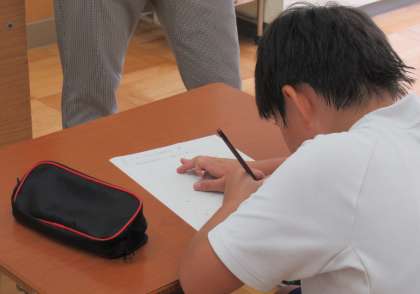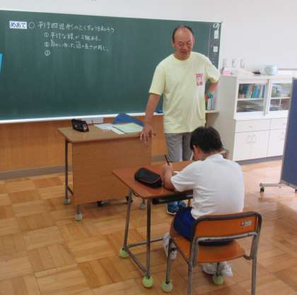 あすなろ学級の算数では、平行四辺形の特徴について学習していました。「平行な線が2組ある」「向かい合った辺の長さが同じ」ことを確かめていました。集中して学習に取り組んでいます。