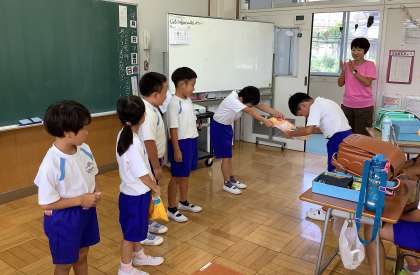 9月26日(火) 1年生から2年生へ 〜感謝の「お手紙」〜 公開日 2023/09/26 更新日 2023/09/26 できごと 2年生の帰りの会に、1年生がやってきました。昨日、2年生の「あきまつり」に招待された1年生が、お礼の手紙を書いて2年生に届けてくれました。1年生からのうれしいサプライズに2年生は大喜びです。 学びをとおして、1年生と2年生の心あたたまる交流が見られました。1年生も2年生も豊かな心が育っています。とてもうれしい光景でした。