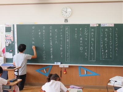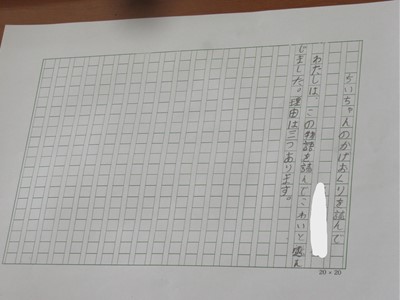 9月27日(水)3年生の国語『ちいちゃんのかげおくり』 公開日 2023/09/27 更新日 2023/09/27 できごと 3年生たちは、『ちいちゃんのかげおくり』の学習のまとめとして、「感想文」を書く学習をしました。担任の先生から「感想文を書くときのポイント」を教えてもらい、原稿用紙の使い方を復習しながら、形式に合わせて文章を書いていきました。 3年生たちは、どんな感想をもったのか、どんな文章になるのか楽しみです。