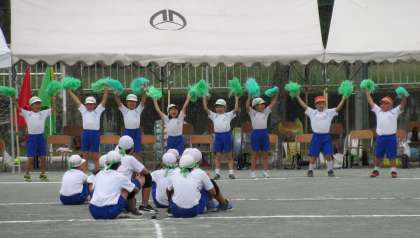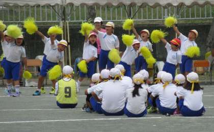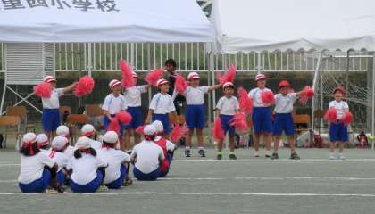 9月30日(土) 1・2・3年生による「応援合戦」 公開日 2023/10/01 更新日 2023/10/01 できごと 4〜6年生による団競技に向けて、1・2・3年生による「ちびっ子応援団」が登場しました。どの団も、大きな声で全力で応援しました。その声援は、校庭の端から端まで、響き渡りました。