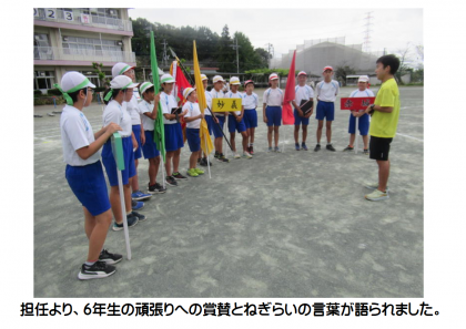 9月30日(土) 6年生の大活躍「ありがとう!」 公開日 2023/10/01 更新日 2023/10/01 できごと 運動会に向けて、6年生がリーダーシップを発揮し、本当によく頑張ってくれました。6年生の大きな成長を実感しています。 6年生、ありがとう! そして、10月から今年度後半戦、これからもよろしくお願いします!