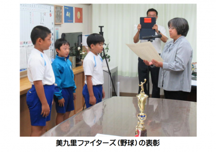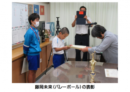 業前活動の時間にリモートで表彰を行いました。社会体育での活躍です。おめでとうございます。