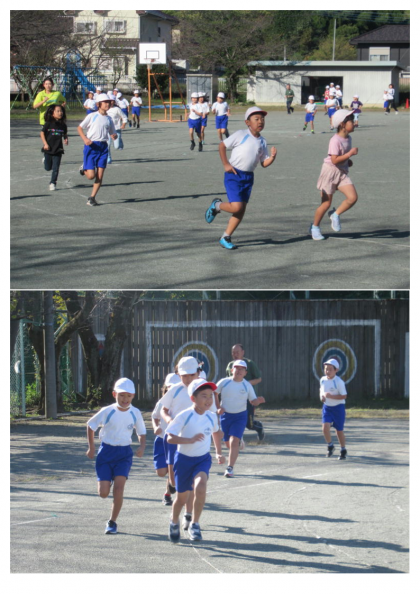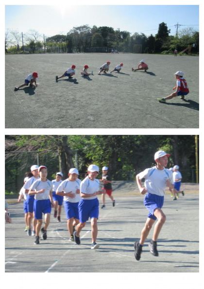 10月6日(金) 朝マラソン 公開日 2023/10/06 更新日 2023/10/06 できごと 運動会を終えて、久しぶりの朝マラソン(3分間走)です。朝日を浴びて、自分のペースで走り、体を目覚めさせます。