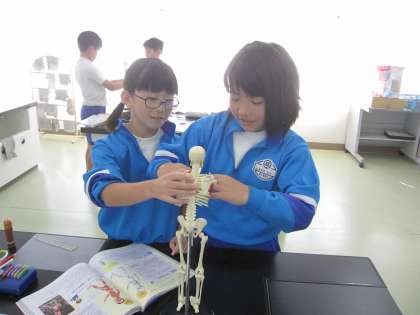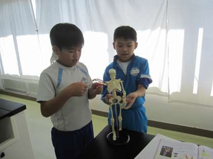 体のいろいろな部分について、ほねときん肉の関係を調べました。