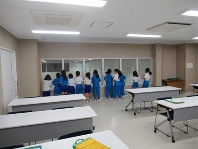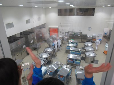 10月12日(木)2年生、調理の様子を見学 公開日 2023/10/12 更新日 2023/10/12 できごと 職員の方のお話を聞き、次は、今日の給食を作っている様子を見学しました。2年生たちは、大きな鍋や調理道具の大きさにびっくりしていました。2年生たちが見学をしていることに気づいた職員の方たちが、こちらに手を振ってくれました。子どもたちも大喜びでした。