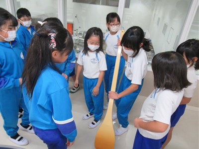 10月12日(木) 2年生、大きな調理道具にびっくり 公開日 2023/10/12 更新日 2023/10/12 できごと 給食センターで使われている調理道具を実際に見せていただき、手に持った子どもたちは、その大きさと重さにびっくりしていました。映像だけではわからない体験をさせていただきました。