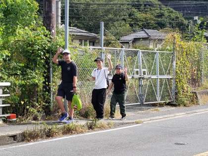鎌倉は歩道が狭いので、交通安全に気を付けて1列で歩きます。