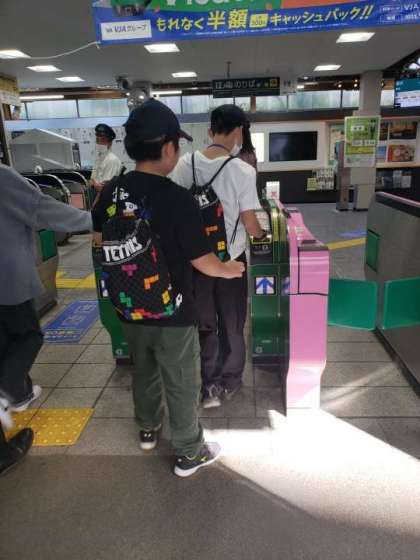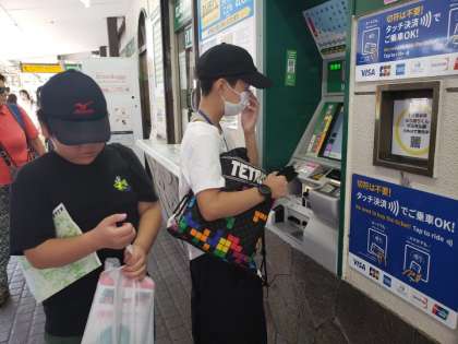 B班に続いて、A班が通過しました。切符も券売機で順調に購入しています。