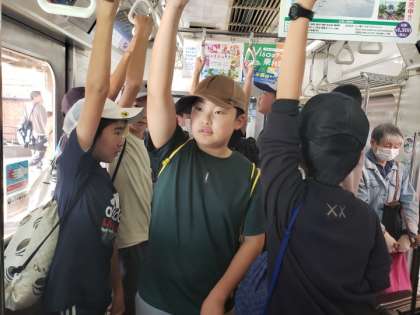 江ノ電に乗り込みました。混んでいます。