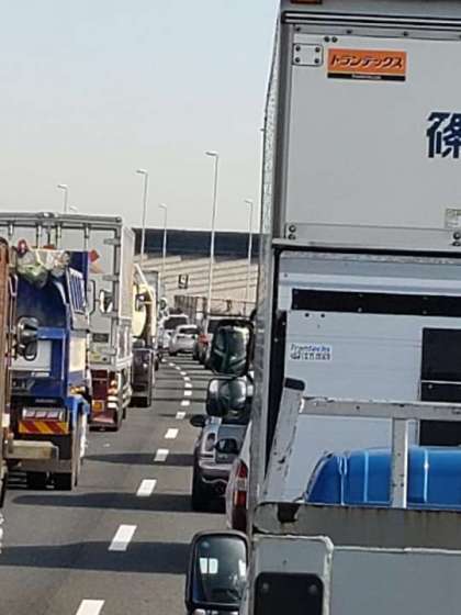 東京のラッシュアワーです。トラックが多いです。