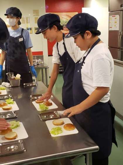 10月19日(木) モスバーガー職場体験 公開日 2023/10/19 更新日 2023/10/21 できごと モスバーガーを作って、もちろん食べます。朝食いっぱい食べたばっかりですが、子どもたちには、別腹のようです。