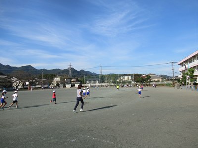秋晴れの青空の下、今日も朝マラソンで学校生活がスタートしました。