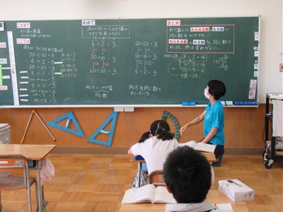 4年生の算数では、わり算の学習をしています。今日は、「わり算の性質」について、「商(わり算の答え)が同じになるわり算のきまりを見つけよう」というめあてで学習しました。