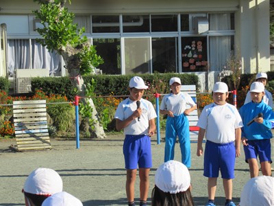 10月24日(火) 児童集会(1) 公開日 2023/10/24 更新日 2023/10/24 できごと 今日は、児童集会で学校生活がスタートしました。 まず、各委員会からの連絡がありました。体育委員からは朝マラソンの取り組み方についての呼びかけ、保健委員会からは寒暖差によって体調を崩す人が多いので、健康管理に注意しましょうという呼びかけがありました。 そのあとに、児童会企画の「警泥(けいどろ)」を全校で行いました。