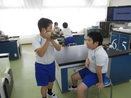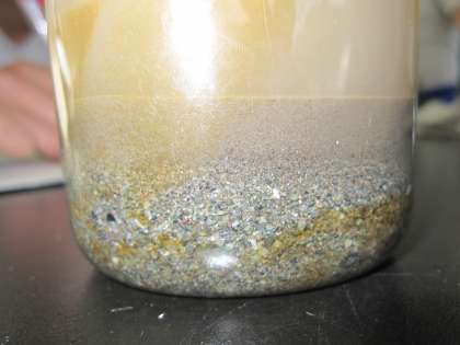 10月20日(金)6年理科 土地のつくりと変化(その4) 公開日 2023/10/25 更新日 2023/10/25 できごと 砂とどろを混ぜた土と水を入れたペットボトルをふった後にしばらく置くと、つぶの大きな砂が先にしずみ、その上につぶの小さいどろが積もりました。 地層は、流れる水によって運ぱんされたれきや砂、どろなどが海底などに層になって、積み重なってできることがわかりました。