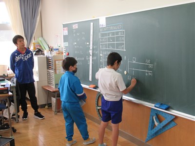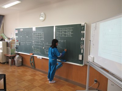 10月25日(水)5年生の算数 公開日 2023/10/25 更新日 2023/10/25 できごと 5年生の算数では「単位量あたりの大きさ」について学習しています。 リボン1mあたりの値段や、ガソリン1リットルあたりの自動車の走る道のりなどを割り出して比較する学習をしていました。 問題を読み解き、図や表で表し、式を立てて計算するという手順で学習していました。集中して学習に取り組んでいました。