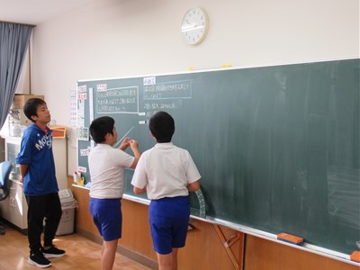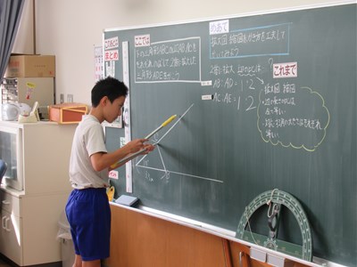 10月25日(水)6年生の算数 公開日 2023/10/25 更新日 2023/10/25 できごと 6年生の算数では、「拡大図・縮図を、書き方を工夫して書いてみよう」というめあてで学習していました。 コンパスや定規を使って、工夫しながら作図をしていました。児童が考えたり、活動したりする時間がたくさんあり、内容の充実した授業が行われていました。