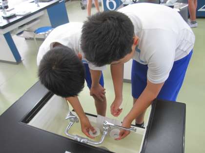 10月25日(水)6年理科 土地のつくりと変化(その2) 公開日 2023/10/25 更新日 2023/10/25 できごと 火山灰を蒸発皿にとって水を加えてよくこすり、にごり水を捨ててきれいにします。