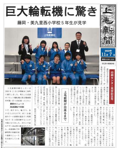 11月8日(水) 5年生「上毛新聞」に掲載されました! 公開日 2023/11/08 更新日 2023/11/08 できごと 昨日「上毛新聞印刷センター」に社会科見学に出かけた5年生の写真が、本日(11月8日付)の上毛新聞に掲載されました。たくさん学んで、みんないい笑顔です。