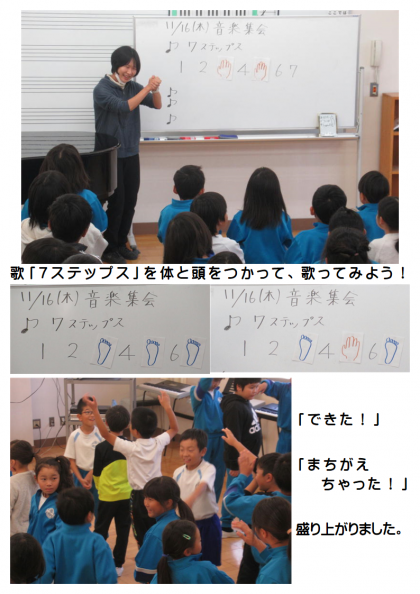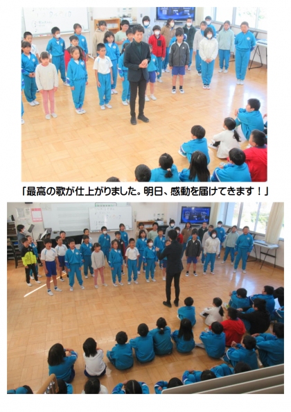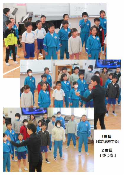 業前活動の時間に音楽集会を行いました。まずは、みんなで体を動かしながら楽しくウォーミングアップして、「7ステップス」を歌いました。次に、明日、「藤岡市小・中学校音楽発表会」に参加する3・4・5年生の合唱(2曲)をみんなに聴いてもらいました。全校のみんなに感動が届きました。