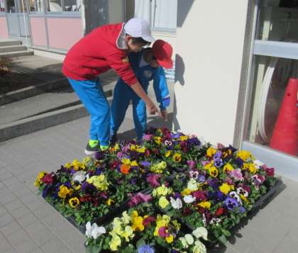 11月16日(木) 1年生&6年生「パンジー植え」(2) 公開日 2023/11/16 更新日 2023/11/16 できごと パンジーの苗は、毎年、藤岡北高校さんでお世話になっています。今年も大きなしっかりした苗が届きました。6年生が「どの色がいい?」と1年生に聞きながら、1年生の好きな色のパンジーを選んで植えました。