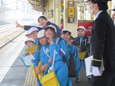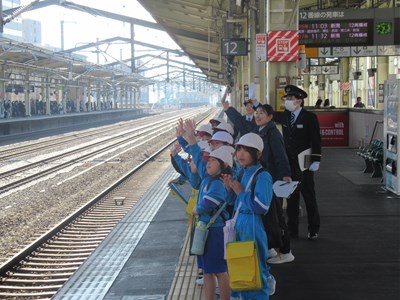 11月16日(木)2年生の生活科見学(6) 公開日 2023/11/17 更新日 2023/11/17 できごと 新幹線のホームに行き、高崎駅を通過する新幹線を待ちます。みんなで手を振ってお見送りをしました。