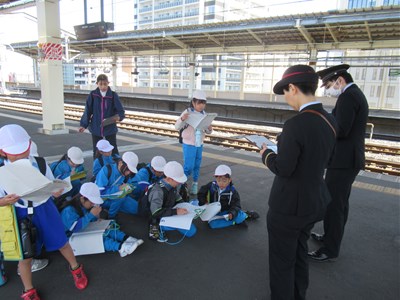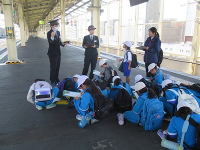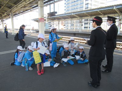 11月16日(木)2年生の生活科見学(8) 公開日 2023/11/17 更新日 2023/11/17 できごと 駅員さんへの質問コーナーの時間です。全員が1つずつ質問をし、駅員さんがていねいにわかりやすく教えてくれました。子どもたちも一生懸命にメモを取っていました。