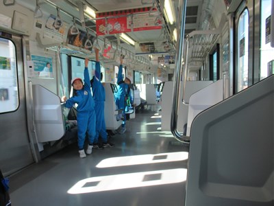 11月16日(木)2年生の生活科見学(14) 公開日 2023/11/17 更新日 2023/11/17 できごと 高崎線に乗り、新町駅に向かいます。 一番前の車両だったため、運転席の中を見ることができました。運転席の観察をしたり、つり革に手が届くか試したり、いろいろなことを学びながら無事に新町駅に到着しました。