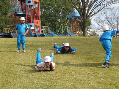 11月16日(木)2年生の生活科見学(18) 公開日 2023/11/17 更新日 2023/11/17 できごと お弁当を食べ終え、公園の芝生で遊びました。遊具が使えないので、担任の先生が段ボールを持ってきてくれ、それを使って芝すべりをしました。おいしいお弁当を食べ、再び元気いっぱいになった2年生たちでした。