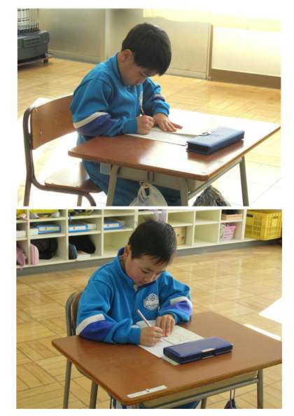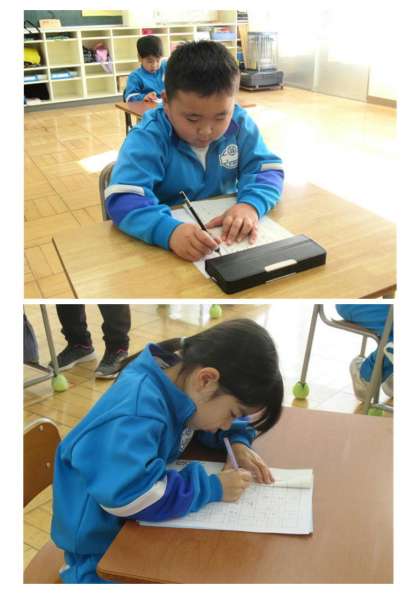 1月10日(水) 1年生「書き初め大会」 公開日 2024/01/10 更新日 2024/01/10 できごと 3校時に、書き初め大会を行いました。1年生は硬筆で書き初めです。お手本を見ながら一文字一文字ていねいに書いていました。1年生とは思えない集中力でした。