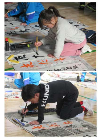 1月10日(水) 3年生「書き初め大会」(1) 公開日 2024/01/10 更新日 2024/01/10 できごと 3〜6年生は、3・4校時に、新しくなった体育館で「書き初め大会」を行いました。 3年生は、初めての毛筆での書き初めで「友だち」を書きました。