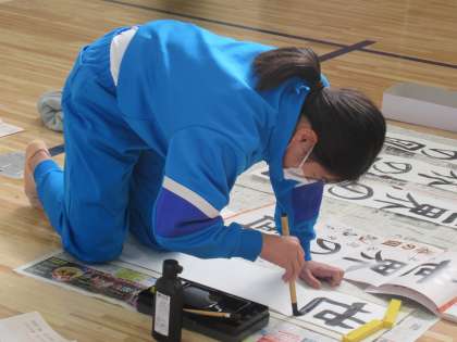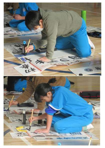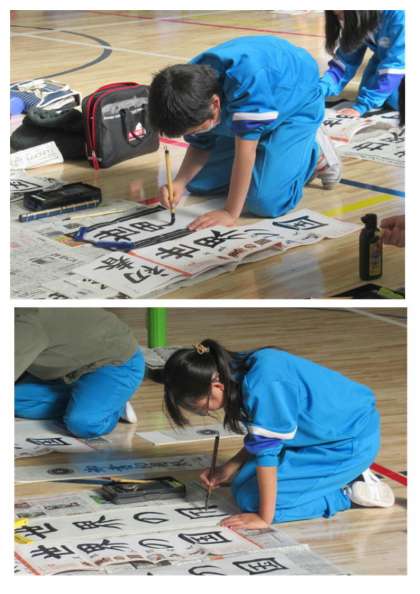 1月10日(水) 5年生「書き初め大会」(1) 公開日 2024/01/10 更新日 2024/01/10 できごと 5年生は「世界の国」を書きました。筆の入り、とめ、はらいなど、ていねいに筆を動かしていました。