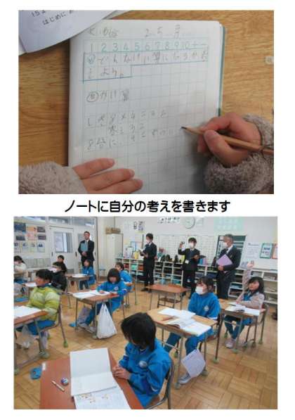2月5日(月) 2年生の算数(年度末訪問) 公開日 2024/02/05 更新日 2024/02/05 できごと 2年生の算数では、文章問題を読んで、どんな計算になるか考えていました(めあて)。これまでの学習をふり返りながら、2学期に頑張って覚えたかけ算九九を使って、式を立てました。ノートに書いた自分の考えをタブレットで撮影して、お互いの考えを共有して学び合いました。よく聞いて、よく考えて、よく発表する子どもたちの主体的に学ぶ姿が見られました。